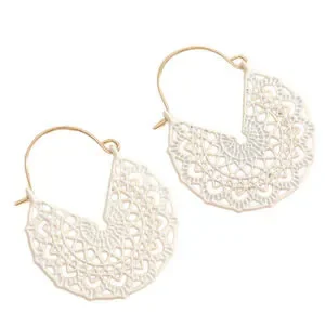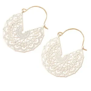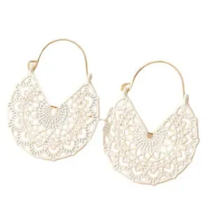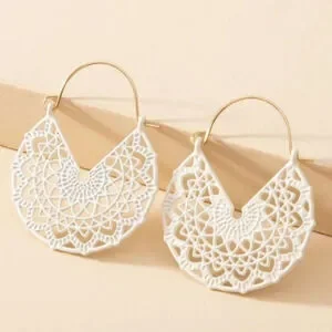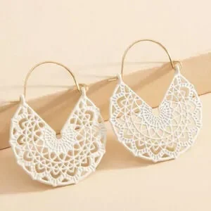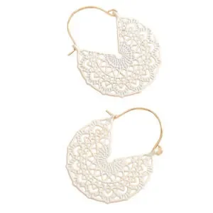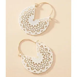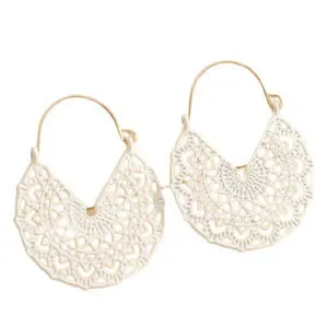 White Hoop Earrings Floral White Basket Hoops Cut out Dangle Earrings Scroll NWT