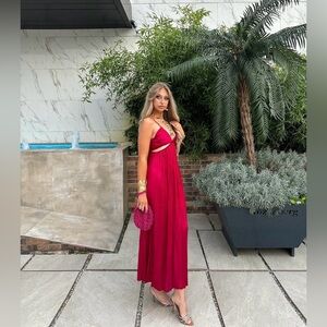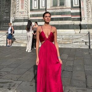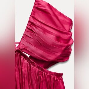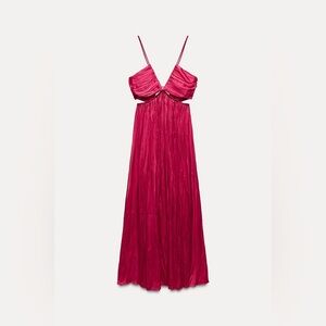 Zara dress maxi boho pleated satin flowy summer vacation wedding evening