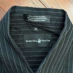 Beverly Hills Polo Club Black Strips Buttons Down Shirt XXL cotton blend