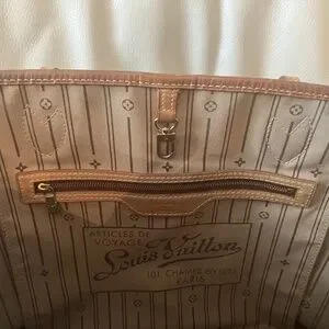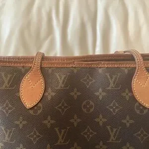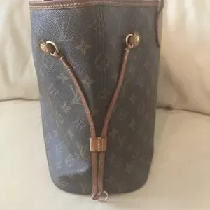 Authentic Louis Vuitton Neverfull MM bag. Well loved, in good condition. This was my everyday bag for so long- it's just a perfect size and truly is never full! No peeling of the canvas and everything is intact. Interior is clean. Leather has darkened with age and there is some cracking along the top. Please see photos for detail.