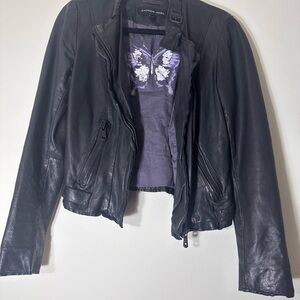 Andrew Marc Lamb skin Leather butterfly lining moto jacket black size XS