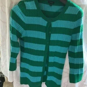 Stylish Talbots sweater in vibrant green and blue. Perfect for any occasion.