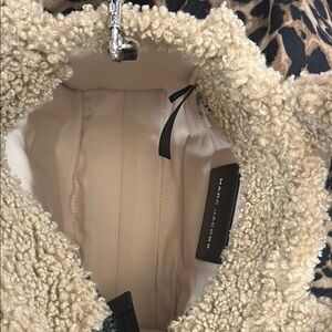 Experience the luxurious feel of the Marc Jacobs Tan and Black Tote Bag, crafted from plush sherpa material. This stylish tote combines a cozy texture with a structured design, making it a standout accessory for any occasion. The black logo patch adds a touch of elegance to this versatile piece.