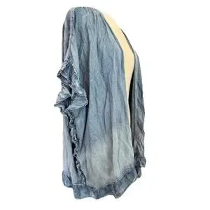 Canvas Washed Denim Ruffle Open Cardigan Size L