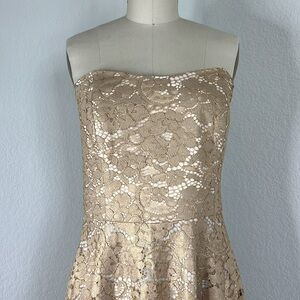 Lilly Pulitzer Aubrianna Strapless Gold Metallic Lace Floral Sweethea Midi Dress