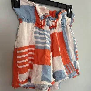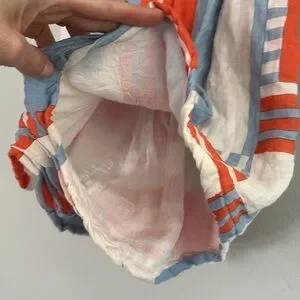 Excellent condition, no flaws. Baby blue and coral colorway. Wide elastic hidden waist band.