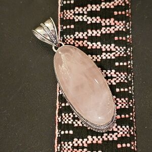 New Beautiful Rose Quartz Pendant 2.5". Set in a Vintage Style Design Sterling Silver 925
