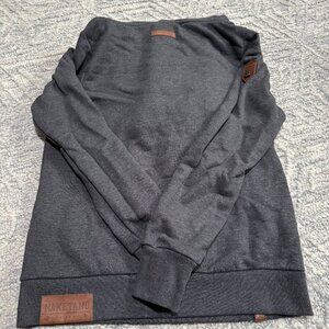 Naketano Sweater Women's XL Hooded Brave New World Thick High Cowl Neck Gray