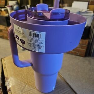 Purple or Blue Water Bottle (Stanley Cup) 3 compartment snack bowl that fits over the top and sits on the handle.