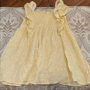 Charming yellow floral dress with ruffle details. Perfect for a sunny day.