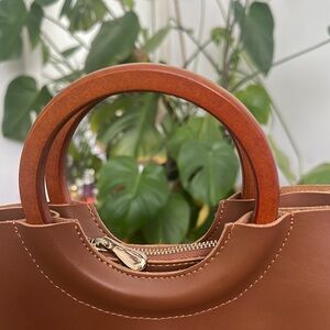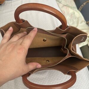 Elegant and versatile, this Laura Ashley brown handbag is perfect for any occasion. Crafted with attention to detail, it offers both style and functionality. wooden handles and 3 separate compartments. Very clean brand new never used smoke free and pet free home