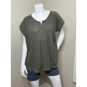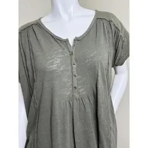FREE PEOPLE Aster Henley Oversized Top Size Xs - Olive Green-
