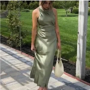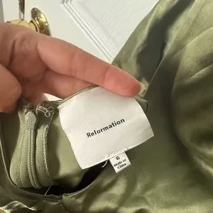 Reformation Casette Silk Dress in Artichoke 6