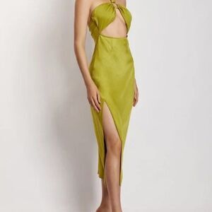 MESHKI (NWT) Harriet Satin Midi High Split Dress, Biscuit, Size L