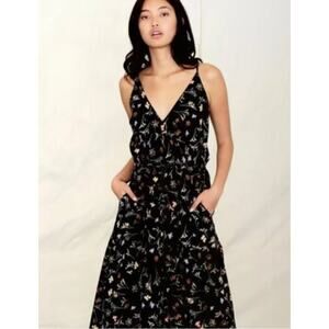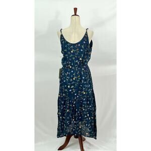 TROVATA Birds of Paradis Sz L Large Lucia Navy Floral Strappy Dress Sundress NWT