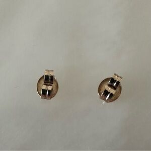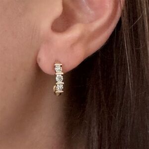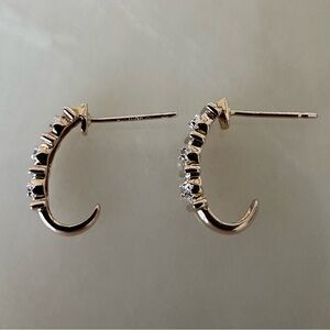 Gold over Sterling J Shaped Post Earrings with Accent Diamond