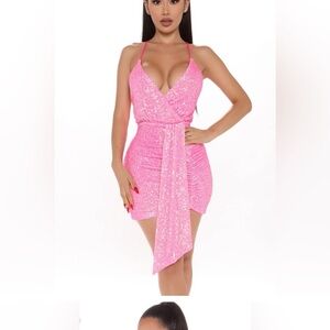 Shine in this stunning pink sequin wrap dress. Perfect for any special occasion. So cute and bright neon pink!
