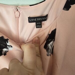 This stunning sundress by Lane Bryant features a scoop neck and flutter sleeves, perfect for a wedding guest. The pink base is beautifully contrasted with a black floral pattern that cascades elegantly, creating a romantic and modern look.