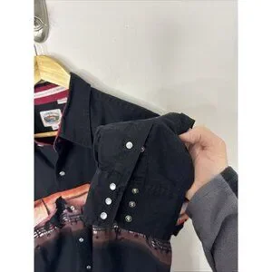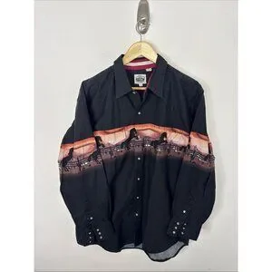 Cumberland Men XL Pearl Snap Long Sleeve Shirt Black Horse Western