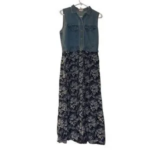 All That Jazz Women's Vintage Floral Denim Maxi Dress Size M