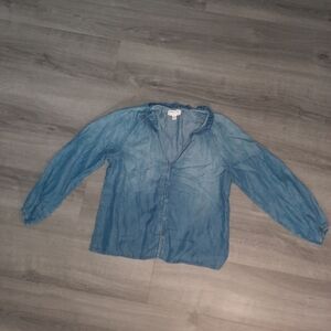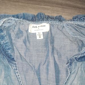 Cloth & Stone by Anthropologie ruffle raglan button up blouse. Soft denim. Size XS. 100% tencel. Great pre-owned condition.