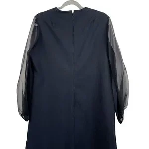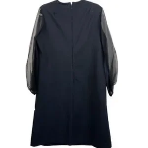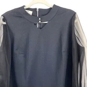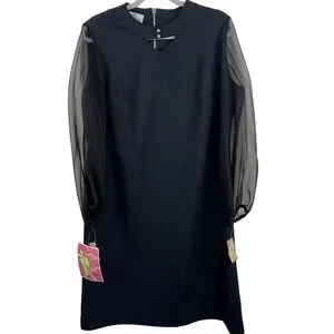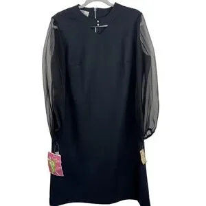 Puritan Forever Young Black Vintage Sheath Dress Sheer Sleeves Rhinestone Collar