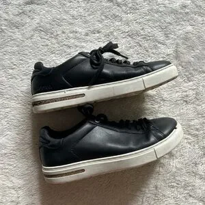 Experience the perfect blend of style and comfort with these Birkenstock sneakers, featuring a sleek black leather upper and a contrasting white sole. The minimalist design and lace-up closure make them ideal for any casual occasion, offering a timeless look that pairs effortlessly with various outfits.