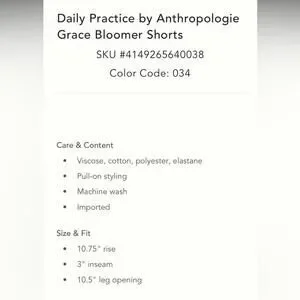 DAILY PRACTICE BY ANTHROPOLOGIE GRACE BLOOMER SHORTS
