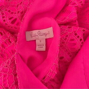 Lilly Pulitzer Quinn Mini Swing Dress Womens Small Hot Pink Halter Knotty Lace