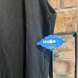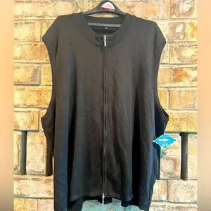 Stylish black zip-up vest. Perfect for layering. Black acrylic treated for superior durability. New with tags.