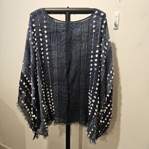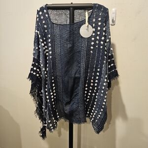 Add some sass to your wadrobe with our NWT pashima shawl poncho by Demdaco. It has a beautiful striped pattern with textured pom poms. Its lightweight material makes it perfect for a cool summer night. You can tie it at the sides or just leave it free-form. Either way, it will give off boho vibes.