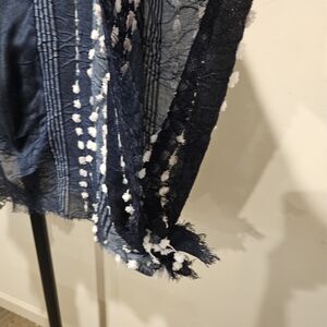 Demdaco NWT Women's Textured Pashima Shawl Poncho, Navy & White, One Size