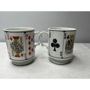 This set of two straight royal flush/ace king queen jack ten of diamonds pedestal mugs is perfect for any occasion. Made of high-quality ceramic and porcelain, these mugs are durable and long-lasting. The mugs feature a beautiful diamond pattern that adds a touch of elegance to any setting. The multicolor design is perfect for all occasions, whether you are hosting a formal dinner party or a casual get-together with friends. These mugs are ideal for coffee, tea, or any other beverage. They are easy to clean and maintain, making them a great addition to any kitchen or home.