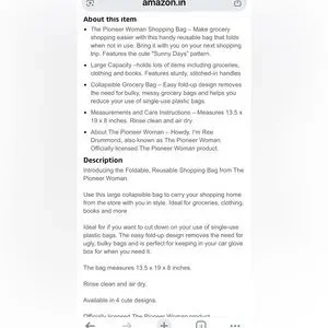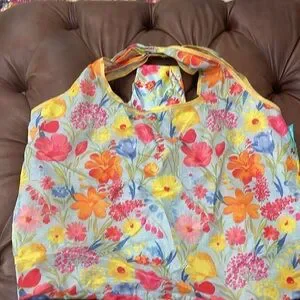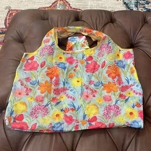 Brighten your shopping trips with The Pioneer Woman Floral Shopping Bag. Featuring a vibrant multicolor floral design, this bag is both stylish and practical. Perfect for carrying groceries and more. Carrying pouch has part of the seam coming unsown.