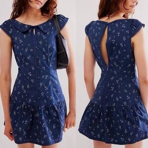 NWT Free People Beasley Mini Dress in Navy Combo. Size Medium