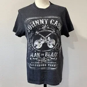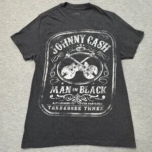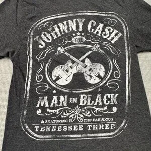 Johnny Cash Man In Black Graphic T-Shirt Short Sleeve Charcoal Gray Adult Small