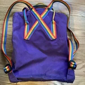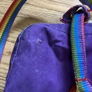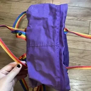 Super cute backpack with rainbow straps. Shows signs of wear (see photos) but still has lots of life left in it!