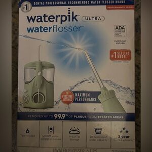 Efficient water flosser in a soothing green color. Ideal for dental hygiene.