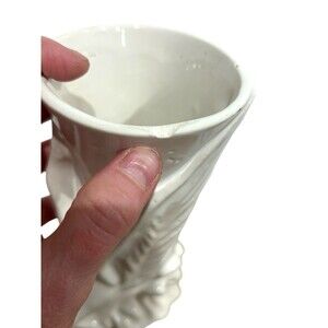 The Vtg Morton Pottery Seagull Creamy White Bird of Paradise Vase is a vintage piece from 1955, featuring a Mid-Century Modern style with a glossy finish. This original Art Pottery vase depicts a seagull in a raised design, with waves and feathers as decorative elements. Made of clay in the United States, this vessel is a unique and eye-catching addition to any collection, embodying the ocean theme of the era.
