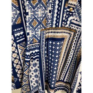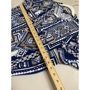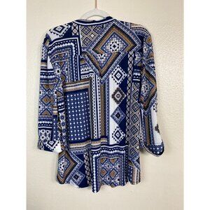 SOLD💙Cocomo Top Women Size Large Blue White Geometric Blouse Stretch 3/4 Sleeves