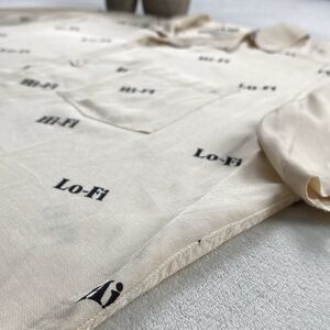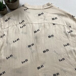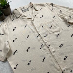 This All Saints Conscious Collection Lo-Fi short sleeve shirt has a lightweight, thin/slightly sheer, very soft woven, stretchy feel with an all over digital/music inspired lo-fi and hi-fi print. A nice camp/resort shirt!