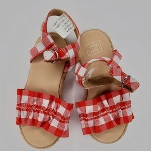 Janie & Jack Red and White Gingham Check Dress with Lace & Sandals