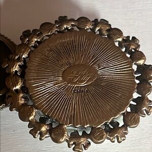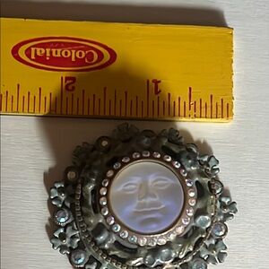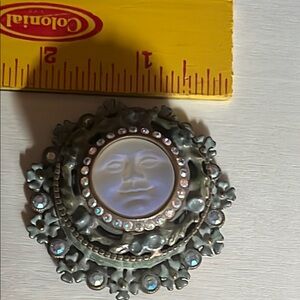 This is a rare Kirks Folly trinket box featuring a Seaview Moon design with floral enamel and AB rhinestones. The small round box is adorned with multicolor enamel and has an antique finish. It is part of the Beauty, Art, Fantasy, Fairy Tales, and Romantic themes, perfect for collectors who appreciate unique and whimsical items.