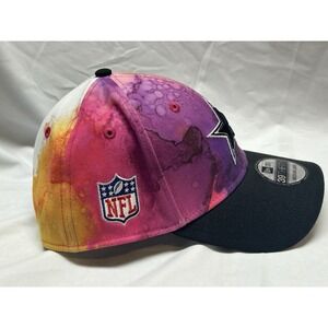 Support your favorite NFL team with this brand new Dallas Cowboys New Era 2022 Crucial Catch 39THIRTY Flex Hat. The hat features a stylish pink and black color scheme, with the Dallas Cowboys team logo prominently displayed on the front. This officially licensed NFL product is perfect for any die-hard football fan.