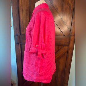 Lauren Ralph Lauren 100% Linen Vibrant Pink 3/4 Sleeve Tunic Shirt Blouse M