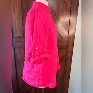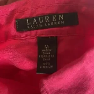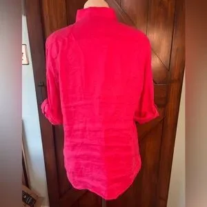 Lauren Ralph Lauren 100% Linen Vibrant Pink 3/4 Roll Up Sleeve Tunic Shirt Blouse M. In excellent preowned condition. Bright pink button-up shirt with rolled sleeves. Features front pockets and a classic collar.