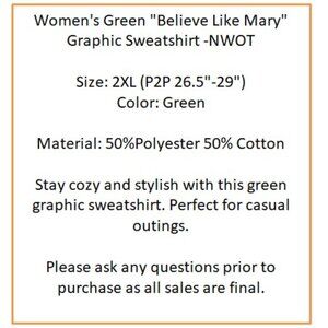 Women's Green "Believe Like Mary" Graphic Sweatshirt -NWOT