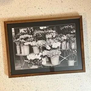 Framed Black and White Photography of Flower Market