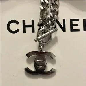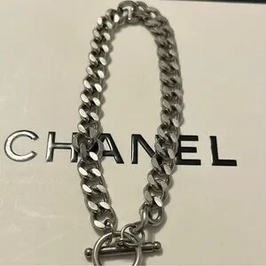 Elegant silver chain bracelet:with iconic Chanel logo. Perfect for any occasion.
