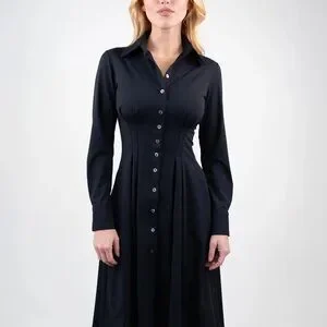 LUXEIRE Long Sleeve Fit-and-Flare Shirt Dress S black